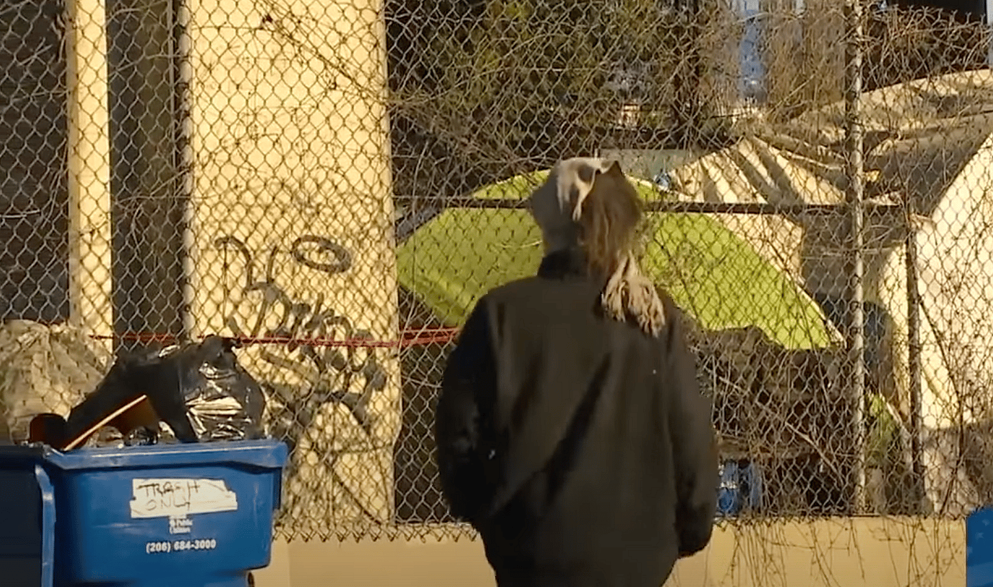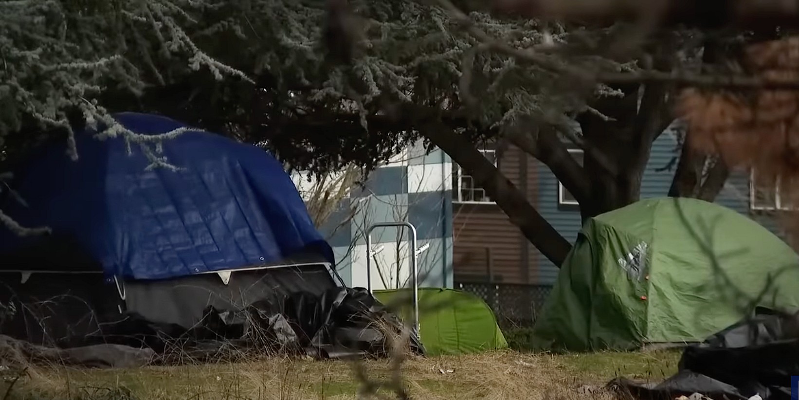 Homeless camping near the freeway via Fox 13 Seattle YouTube