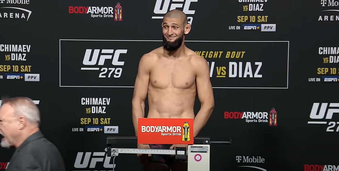 During the weigh-in Chimaev, who is the #3 ranked welterweight contender, came in at 178.5 lbs. That’s 7.5 lbs. above the 171 weight limit for welterweight fighters. Diaz had no issue making weight coming in at 171 lbs.