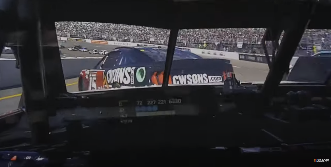 “Restart we’re running two-wide and he just got in hurry and ran me over. So wasn’t much I could do.”