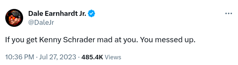 Earnhardt, Jr. had previously posted online that “If you get Kenny Schrader mad at you, You messed up.”