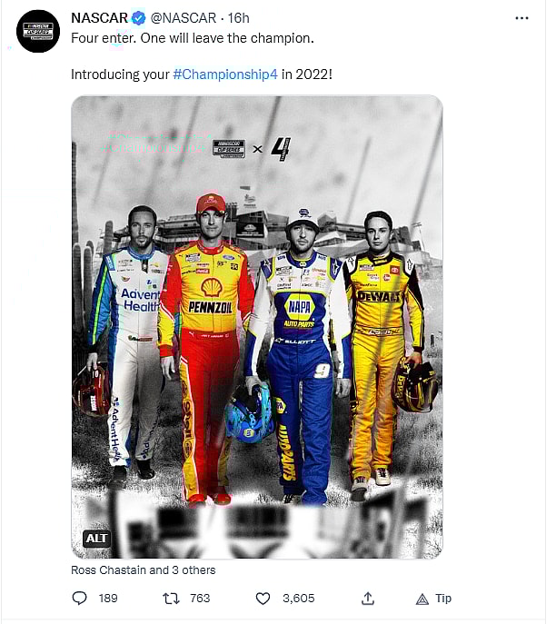 Christopher Bell won the race and the win solidified him into the Championship 4 alongside Chastain, Joey Logano, and Chase Elliott. The four drivers will compete for the championship at Phoenix.