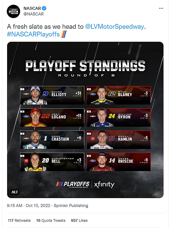 — NASCAR (@NASCAR) October 10, 2022