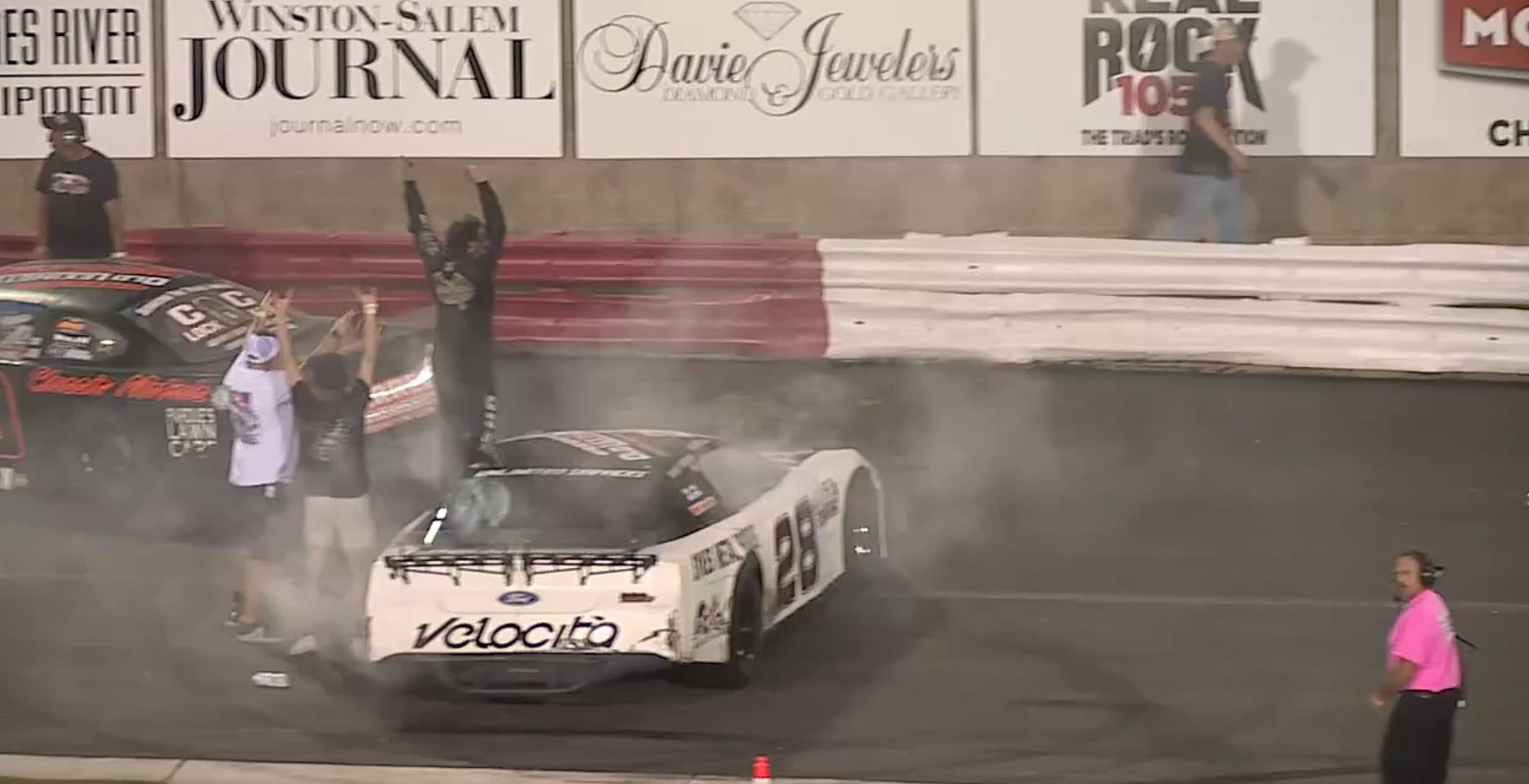 However, Joyce still got his nose to Robinson’s quarter panel. When they came to the north turn, Joyce drove it in hard and completely ran over Robinson’s driver side. The two would eventually spin with Joyce coming to a stop in turn 4 while Robinson attempted to finish the race.