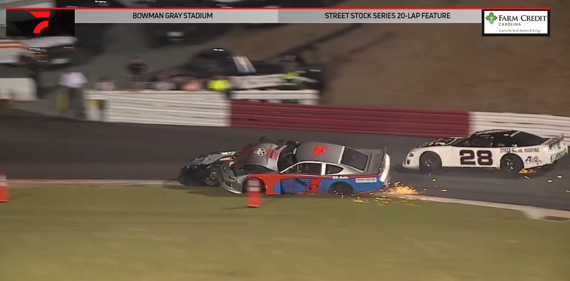 Brutal wreck at Bowman Gray between Gerald Robinson Jr. and Christian Joyce racing for the lead on the final laps. pic.twitter.com/FTqqoKpaR2