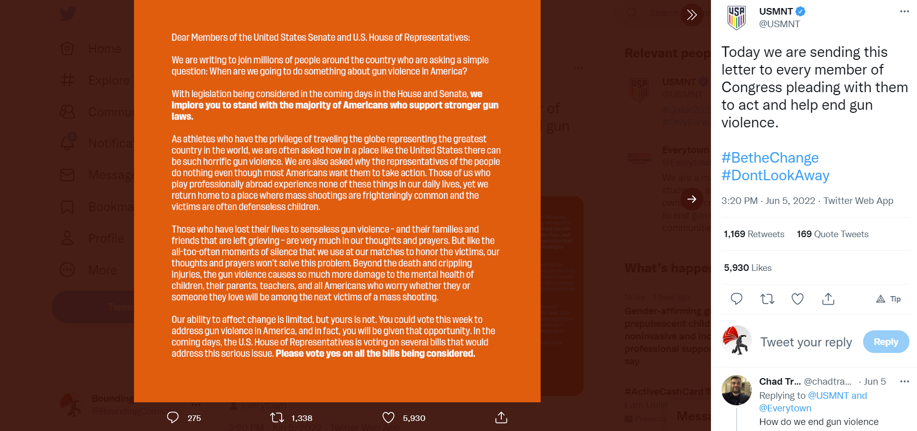 The United States Men’s National Team also called for gun control in an open letter to Congress that was shared to Twitter.