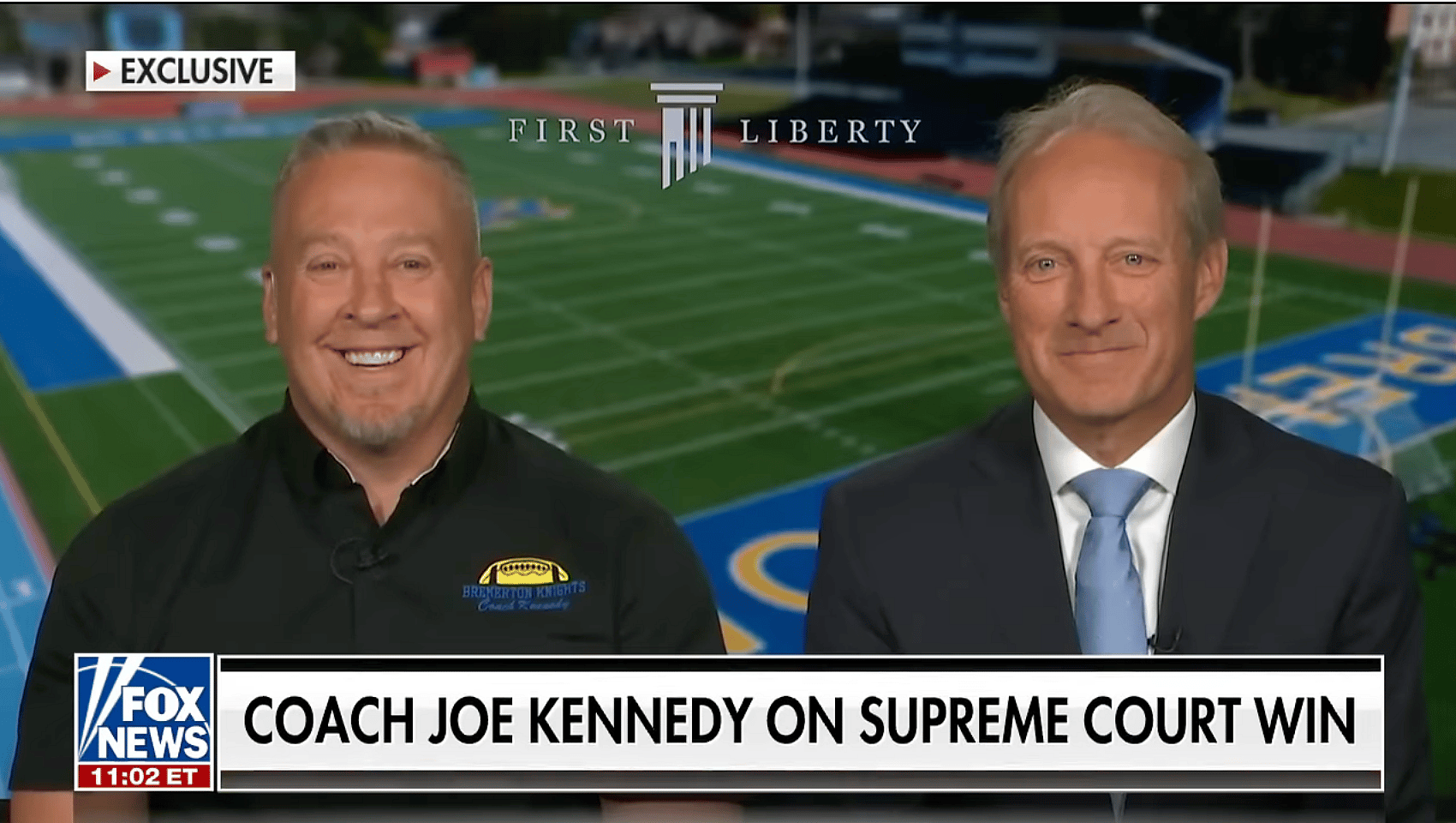 Coach Joe Kennedy (left) and First Liberty President Kelly Shackleford via Fox News YouTube