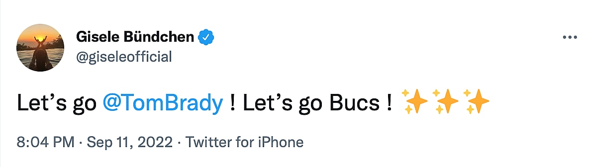 Before the game, Brady received an encouraging message from his wife Gisele Bündchen: “Let’s go @TomBrady! Let’s go Bucs!” Gisele posted on Twitter.