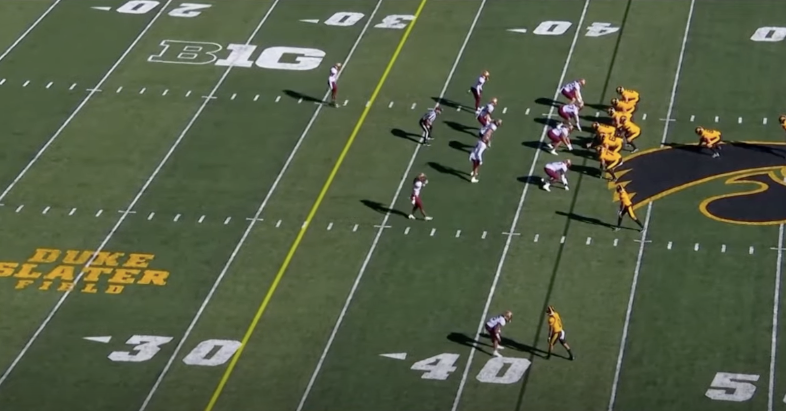 With just over two minutes left, Iowa’s Cooper DeJean was set to receive a punt from Minnesota deep in their territory. DeJean, upon noticing the short punt, pointed towards its expected landing spot. However, while doing so, he ambiguously waved his left hand. The unclear gesture led to him scooping up the ball and making a game-changing touchdown run.