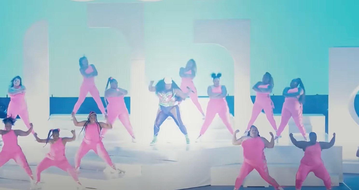 Lizzo with her backup dancers on stage via Entertainment Tonight YouTube