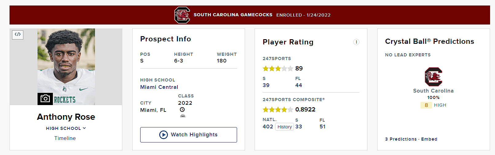 Rose, who signed with South Carolina in 2022 as part of Coach Shane Beamer’s first recruiting class, was rated as the 33rd-best safety by the 247Sports Composite and the 28th-best safety according to Rivals. Rhames and Upshaw enrolled in classes last month.