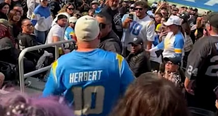 As the Chargers were beating the Raiders on the field, some of their fans were beating on some Raiders fans…