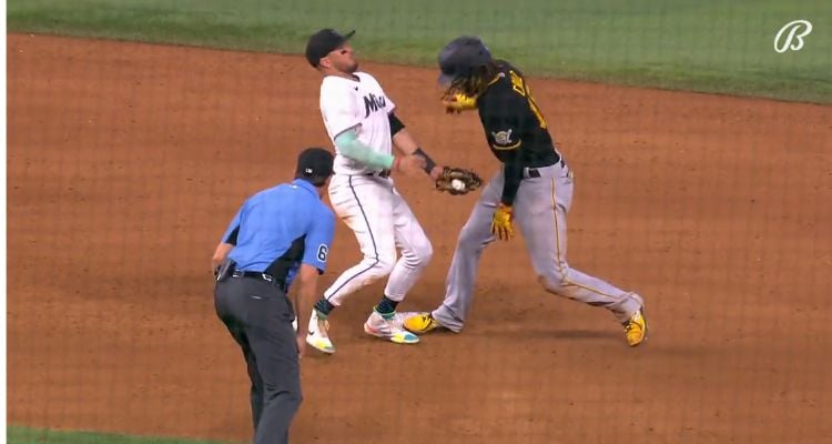 Florida Marlins’ Miguel Rojas Sees Tooth Fly Out Of His Mouth After Hard Contact From Pittsburgh Pirates’ Oneil Cruz
