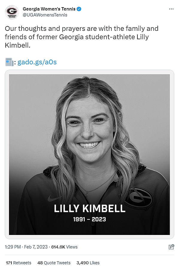The tennis community is grieving the sudden passing of former University of Georgia standout Lilly Kimbell, who died at 31. In an emotional Facebook tribute, her family revealed she suffered from kidney problems that led to a “massive heart attack.” Despite efforts to revive her, including CPR at home and hospitalization, she was eventually taken off life support.