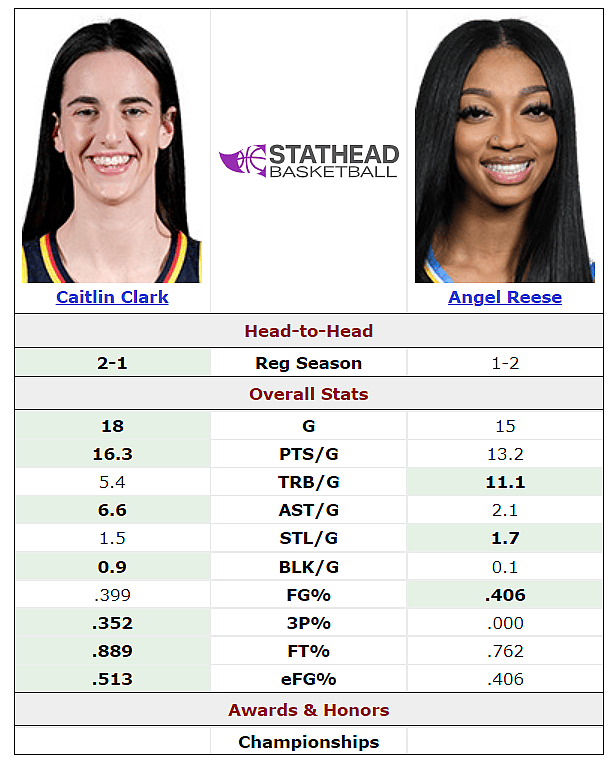 Clark dominates most offensive categories while Reese dominates the boards, something made possible in part by the 3 inches in height she holds over her rival, as well as her position at forward as opposed to point guard.