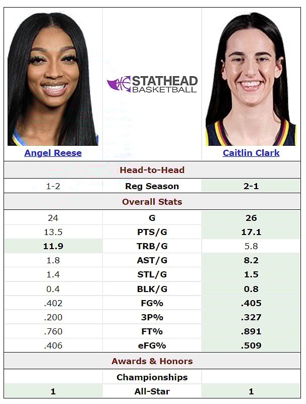 Head-to-head stats between the two aren’t even close. Yes, Reese has been very impressive this season with her record-breaking string of double-doubles. She’s a monster at the boards.